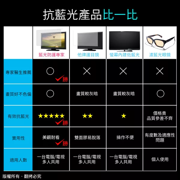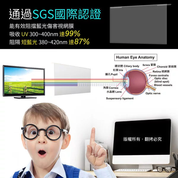 ◆有效降低螢幕藍光、UV光穿透