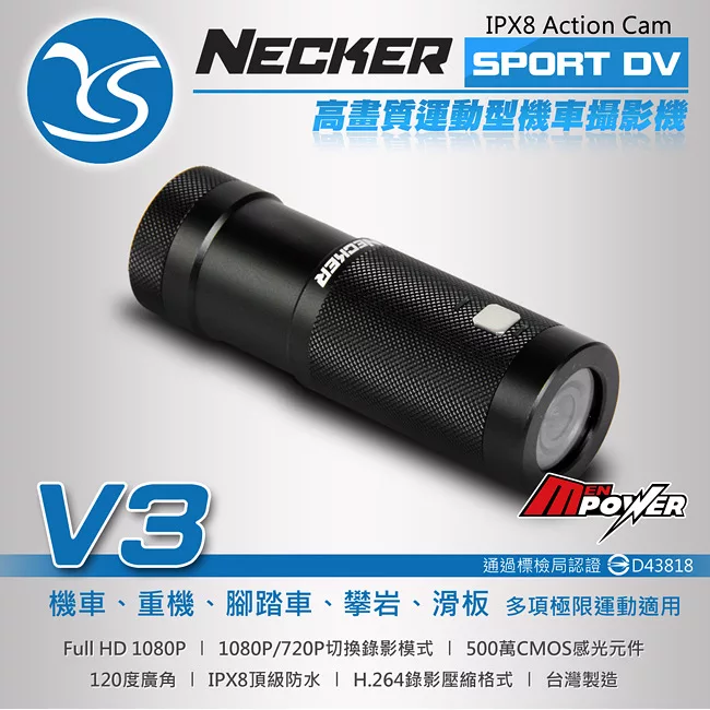 耀星 NECKER V3 1080P 防水運動型機車攝影機 行車記錄器 (送16G Class10記憶卡) 優惠賣家