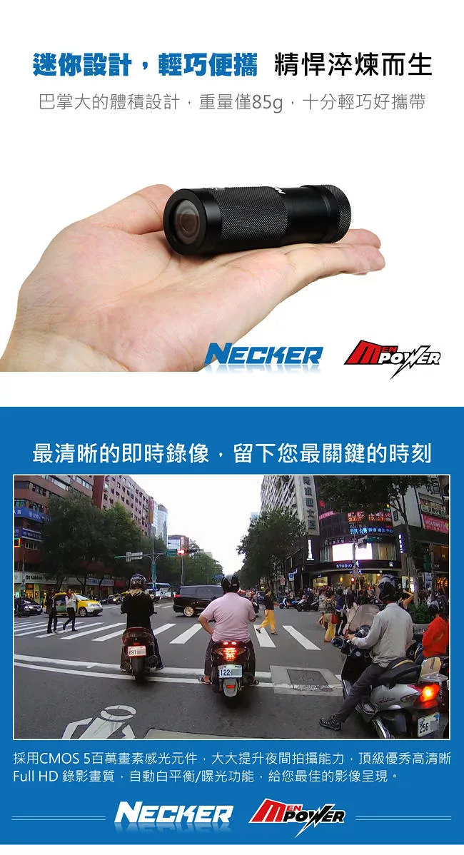 耀星 NECKER V3 1080P 防水運動型機車攝影機 行車記錄器 (送16G Class10記憶卡) CP值