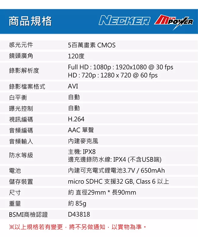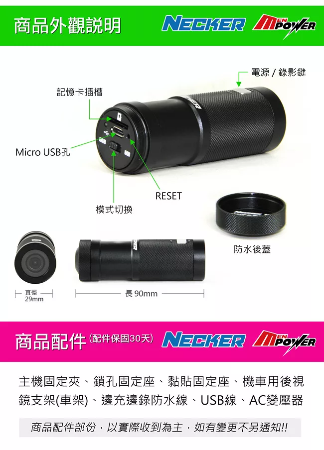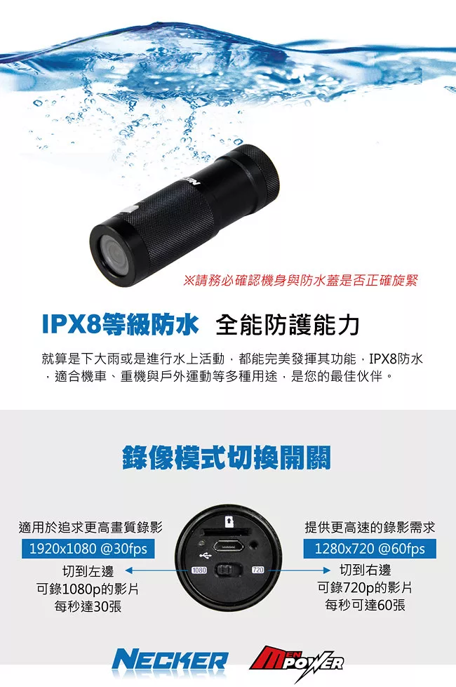 耀星 NECKER V3 1080P 防水運動型機車攝影機 行車記錄器 (送16G Class10記憶卡) ptt討論