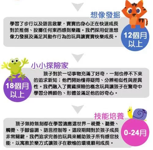 包含了適合0個月到2歲的四種拉梅茲精選玩具,寶寶的五感能力、認知能力、探索能力、肌肉能力將可以得到充分的刺激發育,不論是送禮還是自用都是相當划算的最佳選擇!